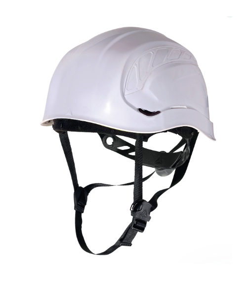 Casco de obra de ABS para trabajos en altura con aislamiento eléctrico equipado con barboquejo de 3 puntos. Material de la carcasa : ABS – Sin ventilación | Perímetro cefálico : 53-63 cm | Rueda de apriete – Sistema de apriete Rotor | Badana textil : PA (Poliamida) – 8 puntos | Material del barbuquejo : Textil – 3 puntos | Banda cómoda : Poliéster | Peso : 350 g | Pantalla facial – Accesorio que debe añadirse por separado al pedido.