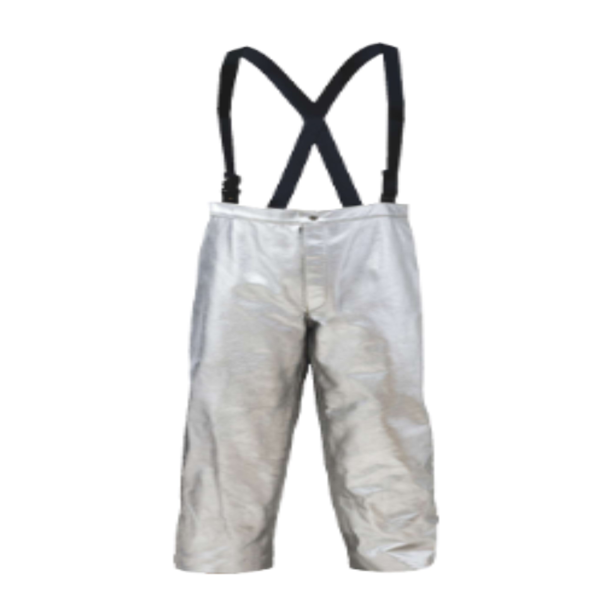 Pantalón aluminizado para la protección contra el calor extremo y salpicaduras de metal fundido.